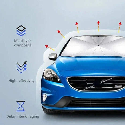 ✨Universal size Foldable Reflective Car Umbrella for Sun Heat Protection